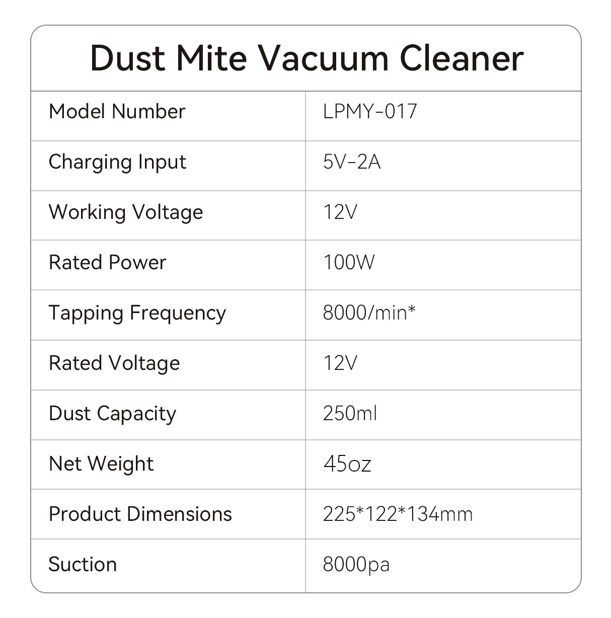 - High-Frequency Tapping Technology - 8,000 taps per minute to powerfully dislodge stubborn mites.